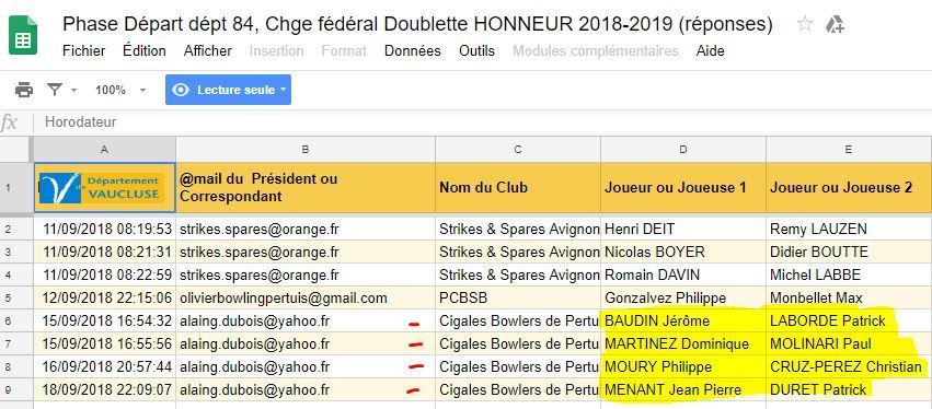 CHALLENGE DOUBLETTES HONNEURS RAPPEL